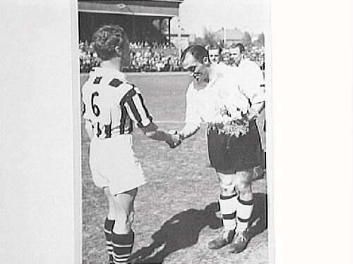 ÖSK:s kapten Sten Dahl får blommor av Surahammars Kapten.