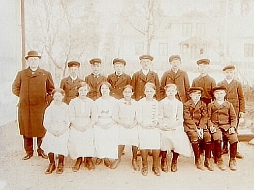 Pålsboda konfirmander, 15 läsbarn, 6 flickor och 9 pojkar och kyrkoherde Hagström från Sköllersta.