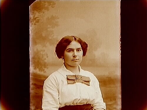 En kvinna, bröstbild.