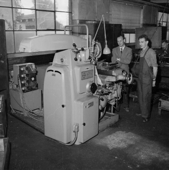 Titel: Gustafsson & Görtz, verkstadsinteriör, två män.