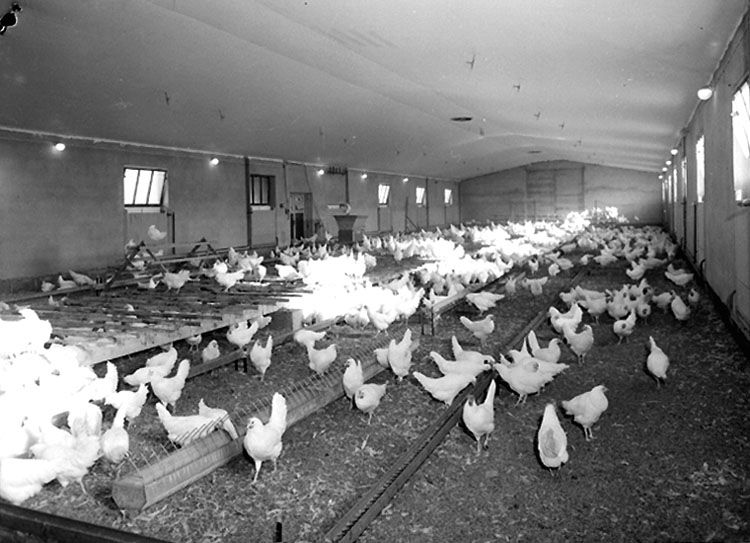 Titel: Stubbetorps Kontrollhönseri, interiör, höns. Sedell Reklam (beställare).
