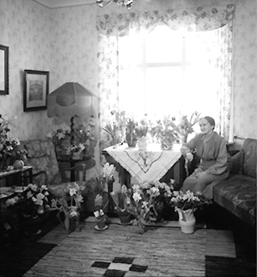Titel: Rumsinteriör, en kvinna. Fru Ljungdahl på födelsedagen.