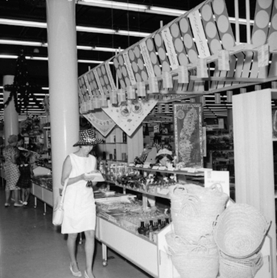 Titel: Konsum Domus, affärsinteriör, kunder och personal.