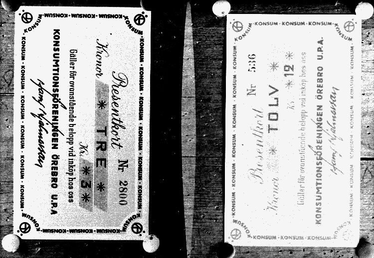 Presentkort, som gäller vid inköp hos Konsumtionsföreningen Örebro U.P.A.