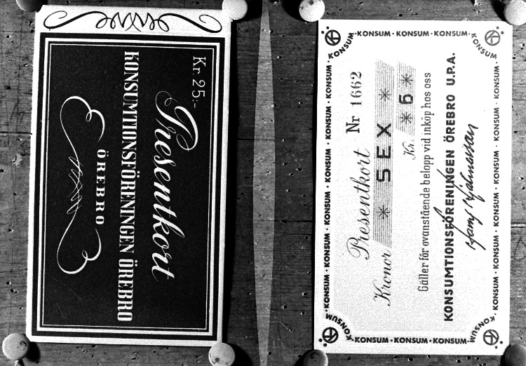 Presentkort, som gäller vid inköp hos Konsumtionsföreningen Örebro U.P.A.