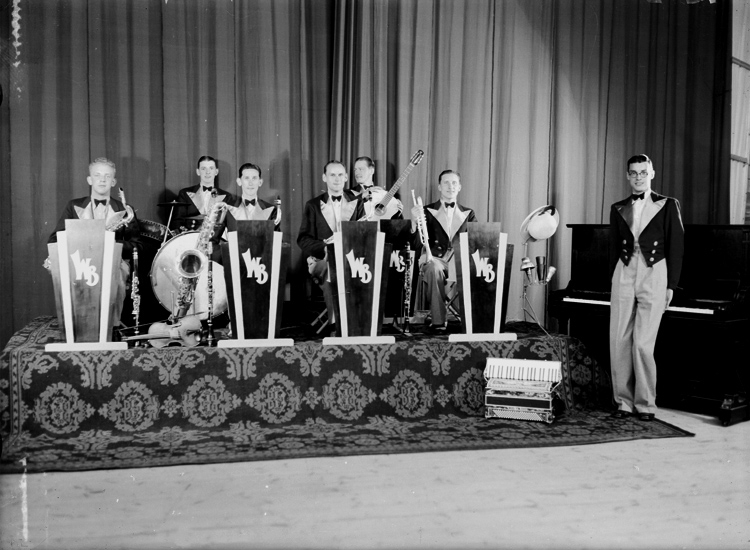 Whispering Band, sju män med musikinstrument.