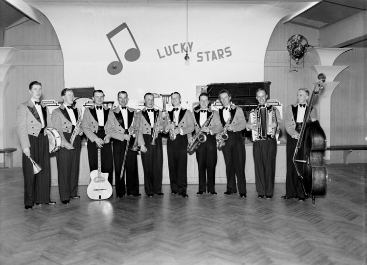Lucky Stars Dansorkester, tio män med musikinstrument.