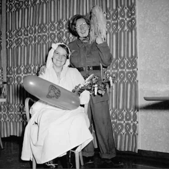 Interiör, två personer, möhippa för Signe.