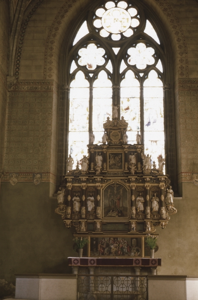 Altaret och kyrkfönstret i Nikolai kyrka.