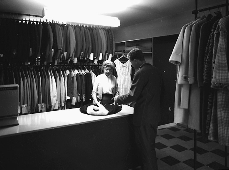 Bergeå Kemiska, kemtvätt, interiör, två personer.
