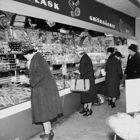 Titel: Konsum, affärsinteriör, kunder och personal.