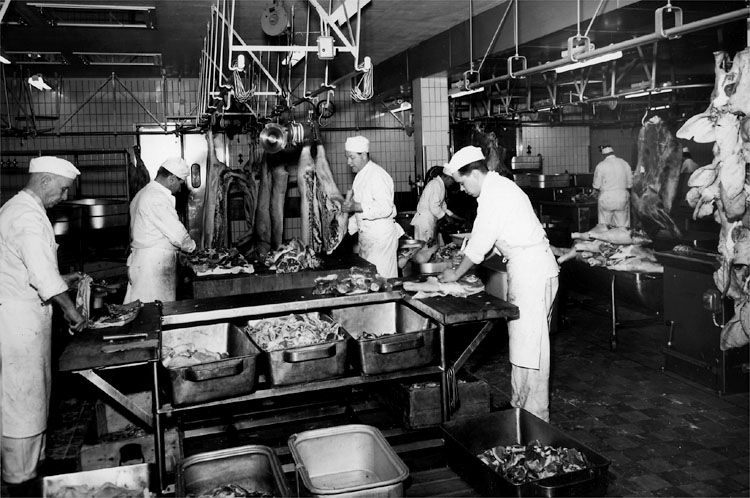 Konsum, charkuteriavdelningen, sju män.