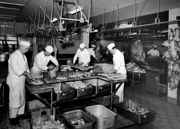 Konsum, charkuteriavdelningen, sju män.