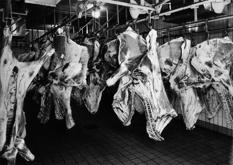 Konsum, charkuteriavdelningen, interiör av kylrummet med kött.
