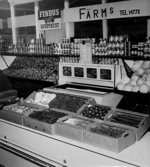 Färms saluhall, affärsinteriör, grönsaksavdelningen.