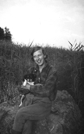En kvinna med en hund.