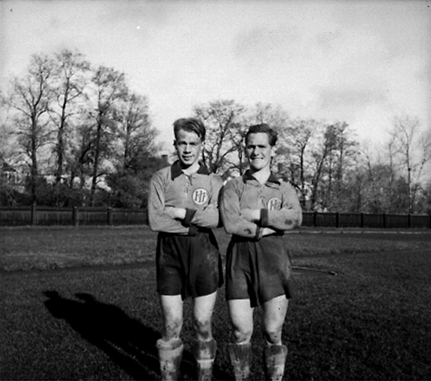Två fotbollsspelare på Örnsro Idrottsplats, A-laget.
