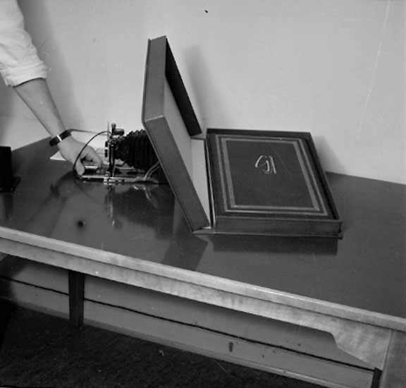 Album, gåva till direktör Gösta Åqvist på 50 årsdagen, den 20 oktober 1954, från personalen vid Oscaria Skofabrik.