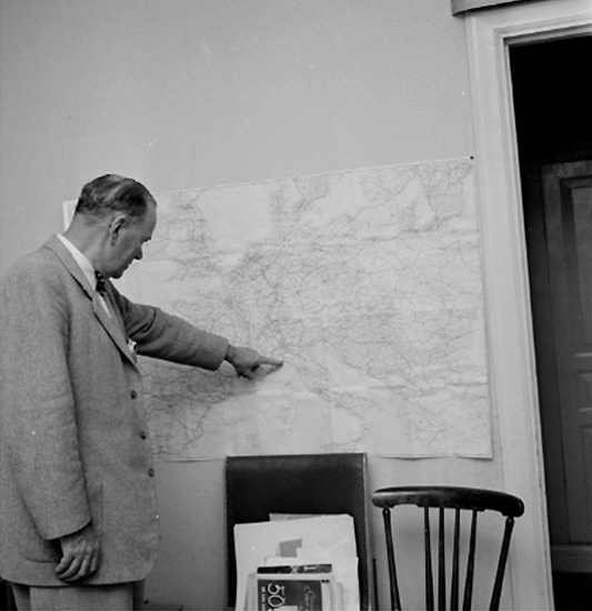 Interiör, Walter Elander vid kartan.