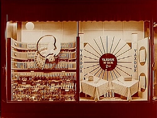 EPA skyltfönster, toalettartiklar, vaxdukar.
