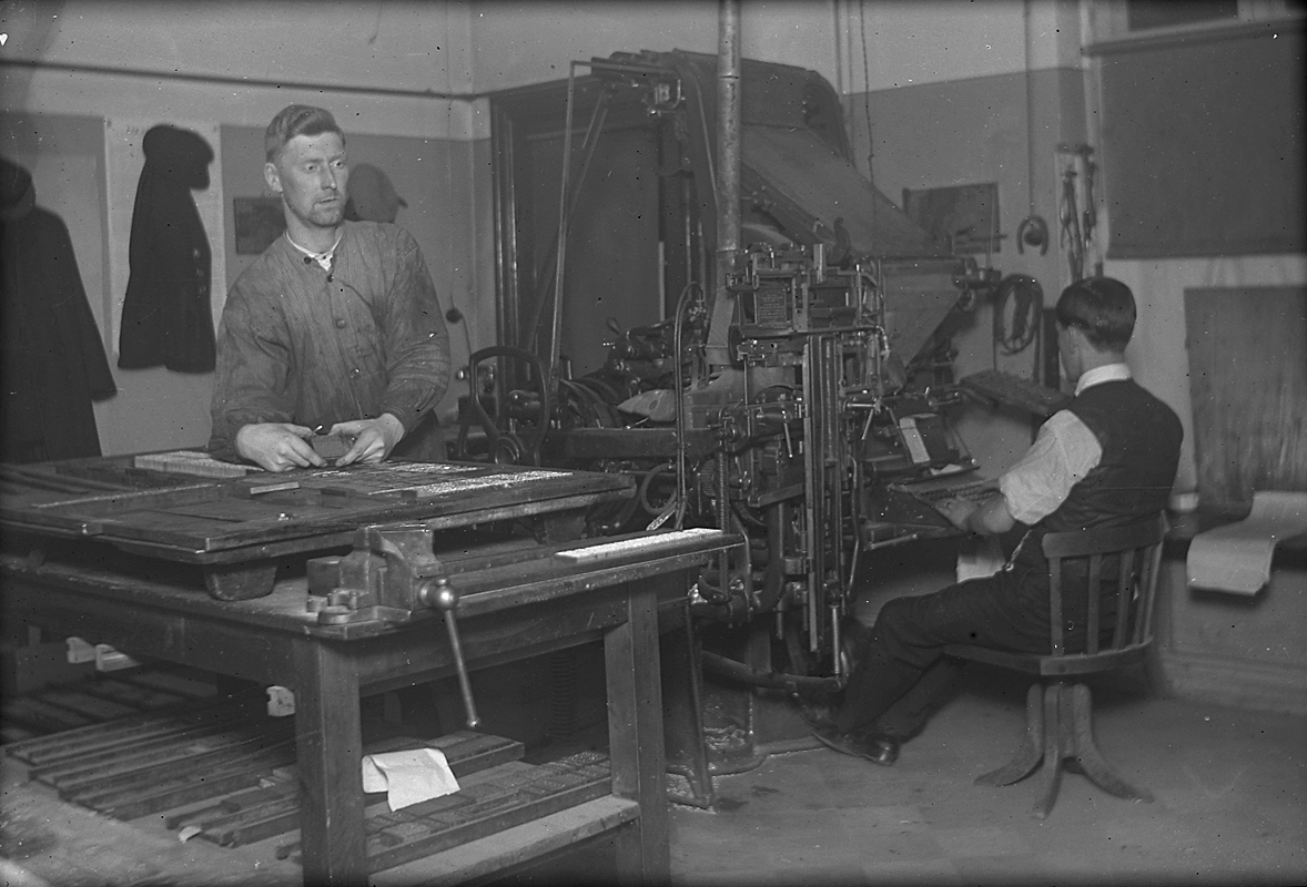 Tryckeriföreningens Solids personal, interiör av tryckeriet.