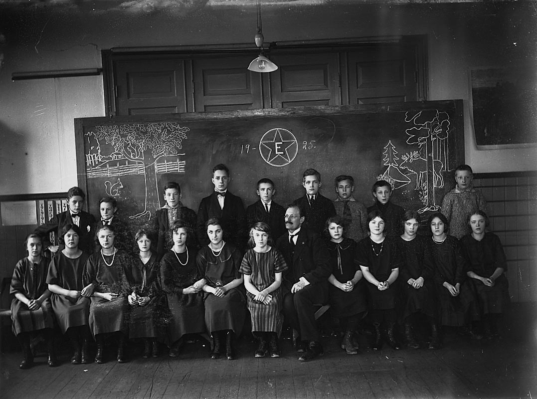 Klassrumsinteriör, elever och lärare Linus Andrén.