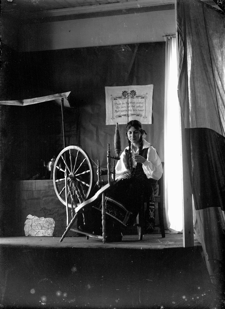 Spinning, en kvinna med spinrock.