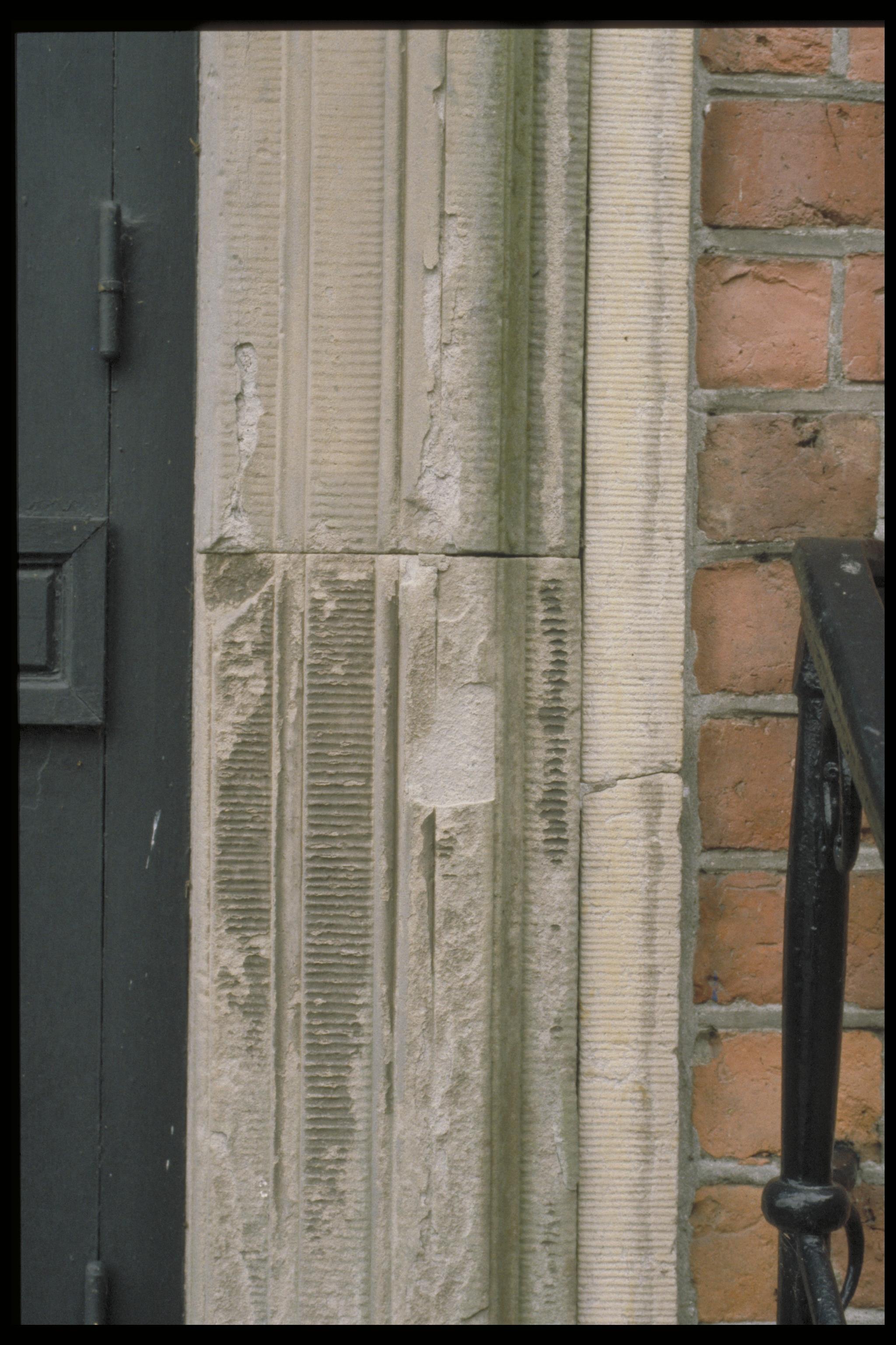 Gårdsportal i flygeln till vänster, högra portalposten.
