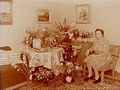 Rumsinteriör, en kvinna, högtid.