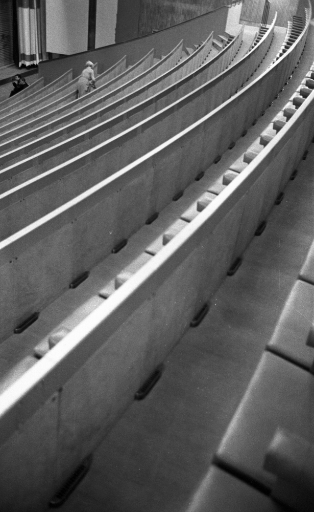 I salongen på Hjalmar Bergmanteatern. Kvinna städar.