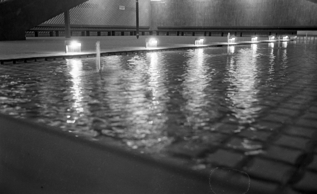Vattenbassäng med belysning på Hjalmar Bergmanteatern.