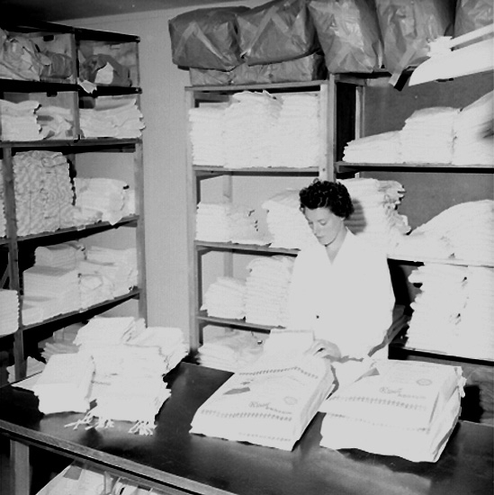 Titel: Interiör, en kvinna. Konsums "låna linne".