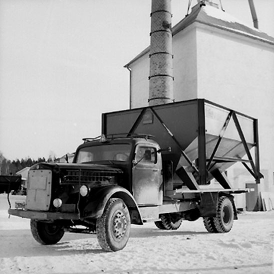 Titel: Vretstorpsverken, fabriksbyggnader, en lastbil.