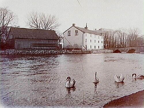 Trevånings bostadshus från 1700 - talet, Arbetshuset. Till vänster en vånings bostadshus, till höger Kanslibron.