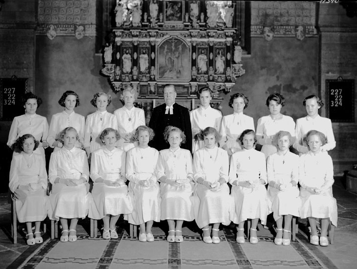 Konfirmander, 17 flickor med pastor Benny Benktsson.
