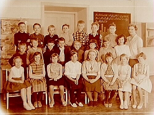 23 skolbarn och lärarinna fru Inga Lindberg.