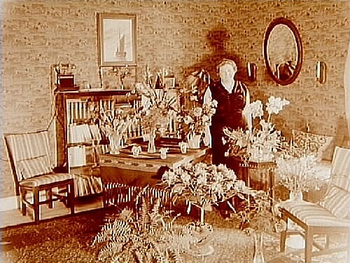 Titel: Rumsinteriör, en kvinna. Lärarinnan fröken Judith Sjölanders födelsedag.