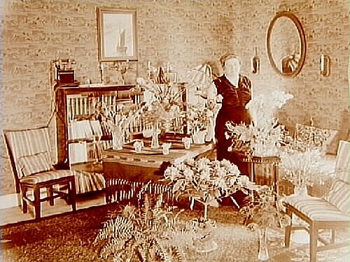 Rumsinteriör, en kvinna.