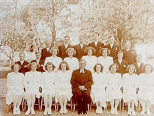 22 konfirmander: 12 flickor, 10 pojkar och kyrkoherde Johansson.