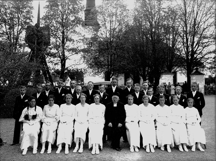 Konfirmander, 10 flickor, 16 pojkar och kyrkoherde Ivar Jäderlund.