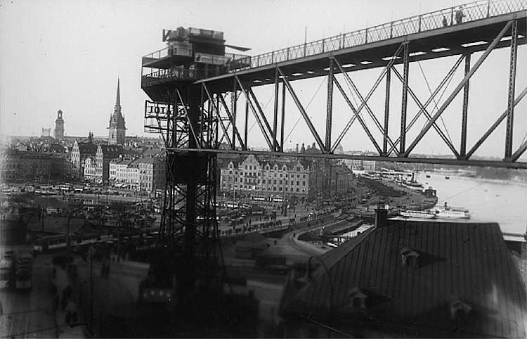 Stadsvy över Stockholm, Katarinahissen i förgrunden.