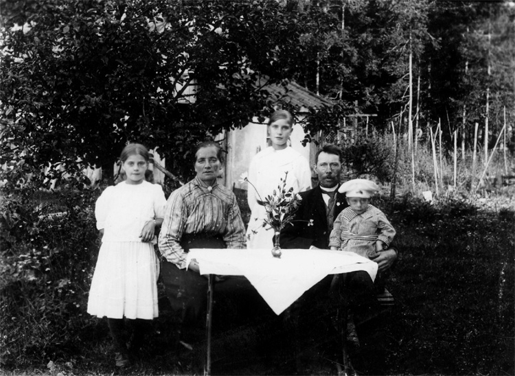 Erik Theon Olsson med familj, från vänster dottern Linnéa, frun Emma Lydia, dottern Thea Elfrida, Erik Theon Olsson och sonen Sven Erik i knä.