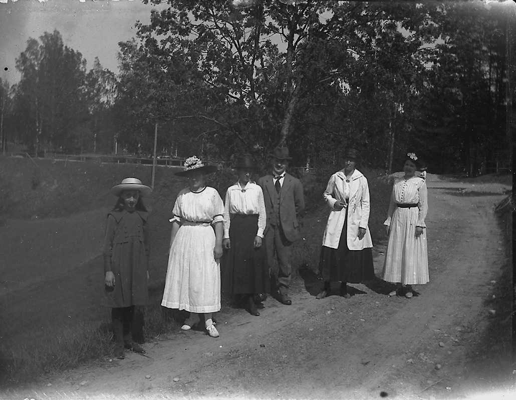 Till vänster Kerstin Pettersson (givarens moster), Olga Sjöqvist (född Pettersson, givarens faster), Petrus Sjöqvist (gift med Olga), m.fl.