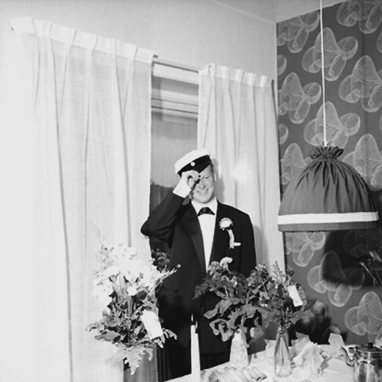 Titel: Rumsinteriör, en student, studentexamen. Börje "Strauss" Johansson, handelsstudent.