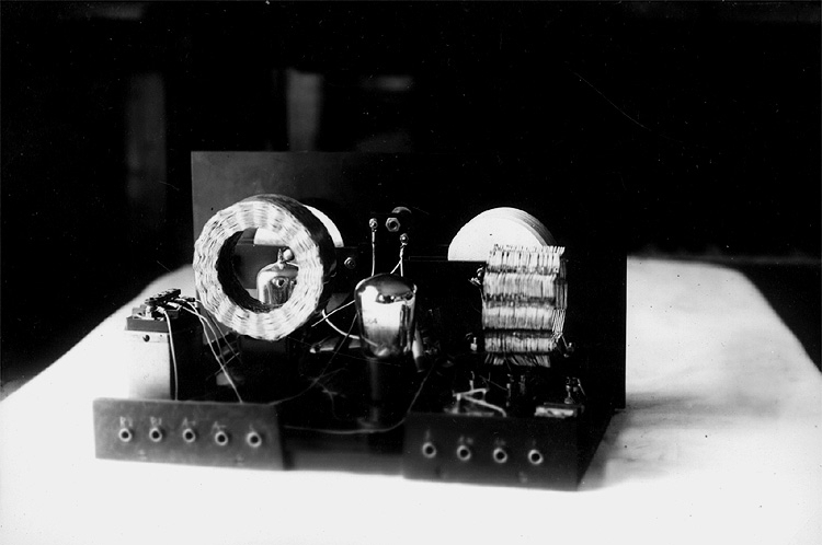 Erik Theon Olssons första hemtillverkade radion med rör.