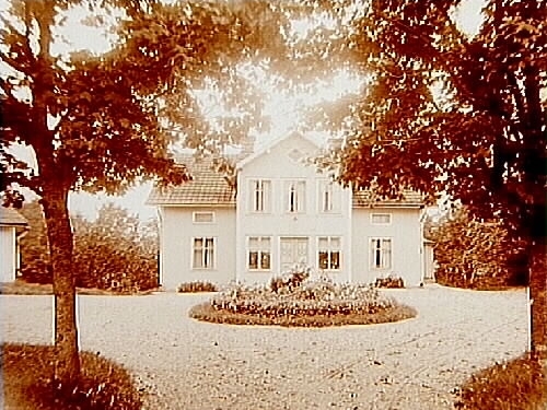 En och en halvvånings bostadshus med frontespis, två flygelbyggnader.