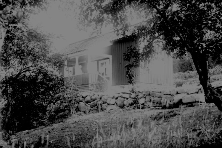 Sommarstugan Fridensborg, familjen Lindskog på verandan.