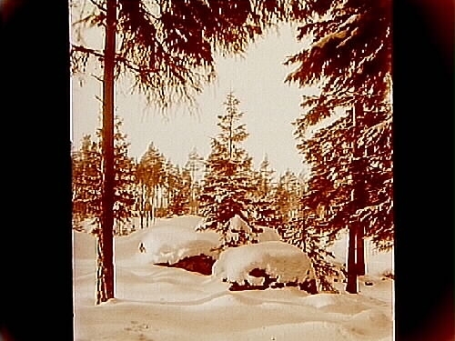 Sörbyskogen, vintermotiv, snötyngda granar.