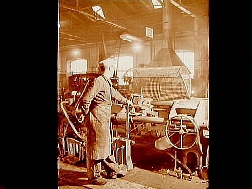 Statens Järnvägars Huvudverkstad (CV), verkstadsinteriör, svarv.