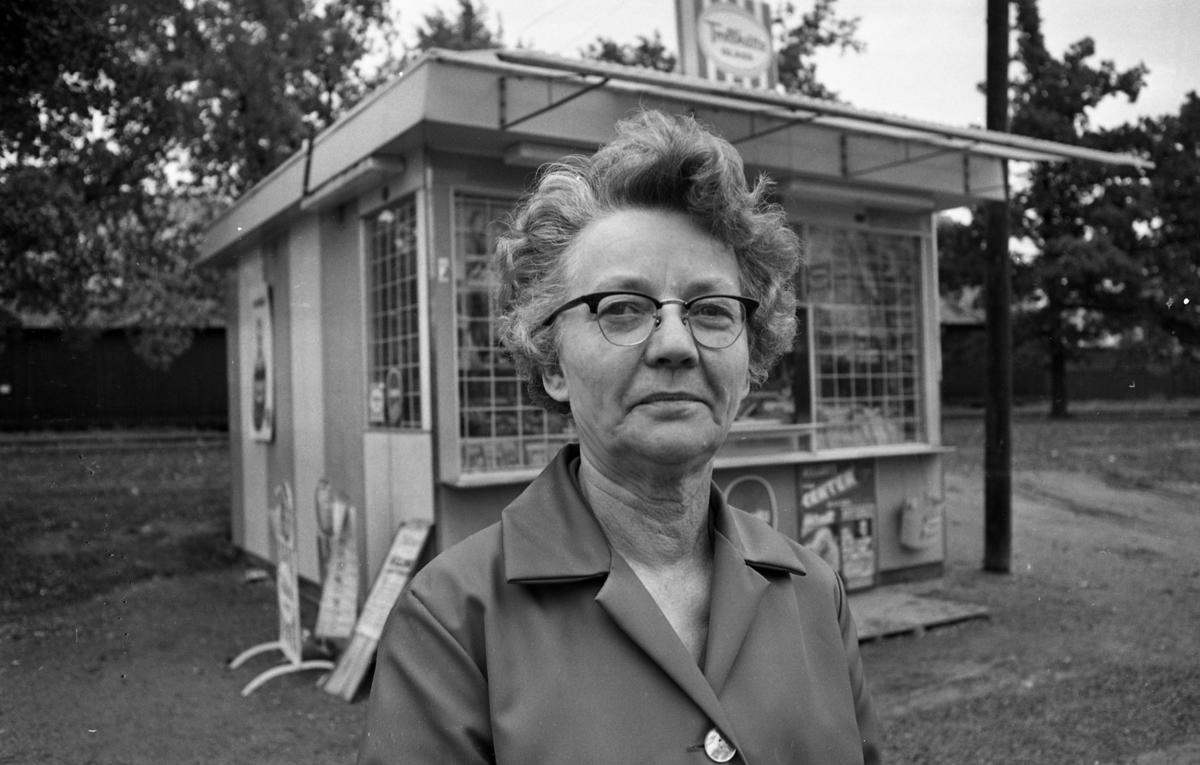 Kioskbiträde, "Slusskiosken". Kioskens placering var öster om Regionsjukhuset i Örebro invid slussen till Hjälmaren.